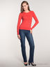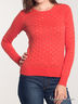 Прекрасный уютный джемпер с округлым вырезом горловины и длинными рукавами. Манжеты и низ изделия окантованы в рубчик. Украшен перфорацией.