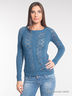 Замечательный джемпер выполнен из хлопка. Модель с округлым вырезом горловины и длинными рукавами. Края изделия окантованы в рубчик. Джемпер декорирован нежным узором.