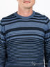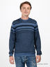 Классический трикотажный джемпер в полоску в синих тонах. Круглая горловина. Манжеты и низ изделия посажены на трикотажную резинку.
