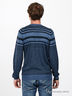 Классический трикотажный джемпер в полоску в синих тонах. Круглая горловина. Манжеты и низ изделия посажены на трикотажную резинку.