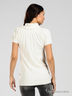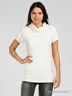 Трикотажный джемпер из приятного на ощупь материала с короткими рукавами. Широкий воротник хомут. Цельнокройные короткие рукава.