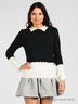 Детали: круглый вырез стойка, отложной воротник, длинные рукава, снизу украшен трикотажным кружевом