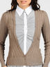 Трикотажный джемпер с эффектом двойки. Отложной воротник на стойке. Застегивается на планку на пуговицах. Длинные рукава с манжетами.
