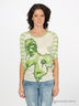 Оригинальный трикотажный джемпер с ярким принтом. Выполнен в пастельных, кремово-зеленых цветах. Круглая горловина. Крой "летучая мышь".