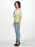 Оригинальный трикотажный джемпер с ярким принтом. Выполнен в пастельных, кремово-зеленых цветах. Круглая горловина. Крой "летучая мышь".