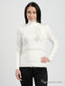 Превосходный джемпер, выполненный из комфортного материала с длинными рукавами и высоким воротником. Модель имеет вязаную фактуру и ажурный рисунок спереди. Отличный вариант для повседневного использования.