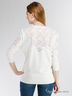 Джемпер с рукавами 3/4 и округлым вырезом горловины. Модель свободного кроя. Отличный вариант на каждый день. Изделие дополнено вставками из контрастного по фактуре материала.