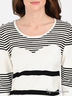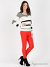 Модный джемпер из эластичного вискозного трикотажа средней плотности с округлым вырезом горловины и длинным рукавом. Изделие украшено контрастным рисунком и стразами. Отлично будет сочетаться с разными по фасону и фактуре вещами.