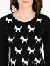 Модный джемпер из эластичного вискозного трикотажа средней плотности с округлым вырезом горловины и длинным рукавом. Изделие украшено рисунком-узором и стразами. Отлично будет сочетаться с разными по фасону и фактуре вещами.