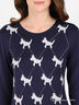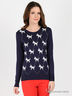 Модный джемпер из эластичного вискозного трикотажа средней плотности с округлым вырезом горловины и длинным рукавом. Изделие украшено рисунком-узором и стразами. Отлично будет сочетаться с разными по фасону и фактуре вещами.