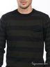 Стильный мужской джемпер с округлым вырезом горловины. Манжеты рукавов, ворот и низ изделия оформлены в рубчик. На груди расположен втачной кармашек. К спинке пришита металлическая пластинка с названием бренда.