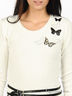 Детали: круглый вырез; манжеты и резинка в рубчик; декорирована оригинальной вязкой, нашивками и стразами; в комплекте двойной черный поясок