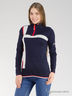 Замечательный джемпер с воротником стойка и длинными рукавами. Спереди удобная застежка на молнию. Низ изделия и манжеты рукавов окантованы в рубчик.