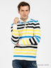 Детали: ворот-стойка, манжеты и низ изделия в виде трикотажной резинки в рубчик; застегивается на молнию; принт - разноцветная полоска