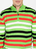 Детали: ворот-стойка, манжеты и низ изделия в виде трикотажной резинки в рубчик; застегивается на молнию; принт - разноцветная полоска