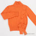Практичный и стильный джемпер для девочки выполнен из шерстяного трикотажа крупной вязки. Воротник стойка, длинные рукава и подол посажены на трикотажную резинку-манжету, изделие по лицевой стороне изящно украшает вставка из основного материала с бантом по подолу.