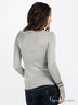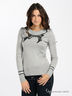 Очень мягкий и нежный джемпер найдет достойное место в Вашем гардеробе и станет любимым предметом гардероба. Тонкая, приятная на ощупь ткань. Прямого кроя. Округлый вырез горловины обработан трикотажной резинкой в рубчик. Длинный прямой рукав. Манжеты выполнены в рубчик. Джемпер декорирован контрастными полосками на рукавах и рисунком в виде банта на полочке.