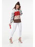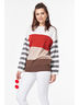 Особенности: Джемпер свободного силуэта в стиле «oversize» выполнен из полушерстяной пряжи в стиле "color-block". Горловина, рукова и низ джемпера оформлены резинкой в рубчик.