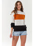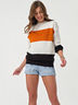Особенности: Мягкий свободный джемпер в контрастную широкую полоску в стиле "oversize" выполнен фактурной вязкой. Низ джемпера, рукава и горловина оформлены резинкой в рубчик.