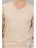Джемпер с длинными рукавами однотонного цвета и V-образным вырезом.