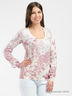 Джемпер приталенного покроя с длинными рукавами и округлым вырезом горловины. Изделие выполнено из принтованной ткани контрастной расцветки. Отличный вариант на каждый день.