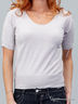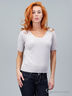 Оригинальный джемпер свободного покроя с короткими рукавами и округлым вырезом горловины. Рукава украшены декоративными завязками. Модель прекрасно скрывает недостатки фигуры, подчеркивая при этом её достоинства. Отличный вариант на каждый день.