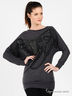 Оригинальный джемпер с укороченными цельнокроеными рукавами 7/8 и округлым вырезом горловины. Изделие выполнено из приятного на ощупь трикотажа. Ассиметричный силуэт. Спереди стильный принт со стразами и ювелирным стеклом. Будьте неотразимой каждый день!