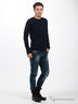 Детали: округлый вырез горловины дополнен трикотажной резинкой в рубчик, длинный прямой рукав и низ изделия на трикотажной резинке в мелкий рубчик