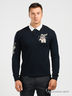 Детали: хлопковый отложной воротник на стойке, планка-застежка на пуговицах, декорирован нашивкой