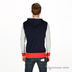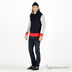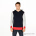 Оригинальный джемпер с капюшоном. Выполнен из комбинированной ткани. Манжеты и низ изделия посажены на плотную трикотажную резинку в рубчик. Декоративная прострочка красного цвета.