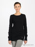 Теплый джемпер черного цвета из трикотажа в рубчик. Круглая горловина. Длинные рукава. Классическая модель, универсальная и стильная.
