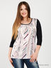 Великолепный джемпер из мягкого, тонкого трикотажа. Широкий округлый вырез горловины. Полочка выполнена из тонкой атласной ткани с красочным узором. Укороченные рукава с заложенными мелкими складками. На полочке заложены встречные складки. Боковой шов дополнен лентами на кулиске. Прекрасно будет сочетаться с разными по фасону вещами!