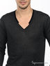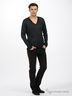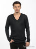 Стильный мужской джемпер с V-образным вырезом горловины. Манжеты рукавов и низ изделия оформлены в рубчик. К спинке пришита металлическая пластинка с названием бренда.
