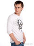 Модель прямого кроя с длинным рукавом украшена крупной декоративной аппликацией.