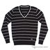 Комфортный классический пуловер для мальчика в полоску. V-образная горловина. Длинные рукава. Манжеты и низ изделия посажены на манжет в рубчик.