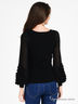 Детали: круглый вырез; длинный рукав с трикотажной манжетой декорирован рюшами; оригинальная вязка