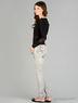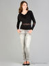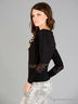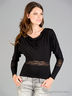 Классический джемпер приталенного кроя. Выполнен из эластичного материала. Вырез "качели", длинные рукава, оригинальные кружевные вставки.
