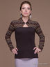 Приталенный джемпер. Верх изделия из ткани с рисунком. Ворот-стойка, длинный рукав, на полочке прорезь. Отличный вариант для создания повседневного образа.