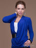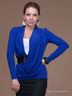 Великолепный джемпер оригинального кроя с эффектом двойки. Округлый вырез, застежка на пуговицы на полочке, длинный рукав, в комплекте пояс-резинка. Отличный вариант для создания неповторимого образа.