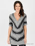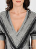 Детали: v-образный вырез горловины, короткий цельнокроеный рукав, полочка дополнена складками