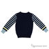 Джемпер прямого силуэта с V-образным вырезом и контрастными вставками.