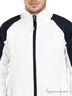 Детали: воротник стойка, застежка на сквозную молнию, ворот, манжеты рукавов и низ изделия оформлены в рубчик, на плечах контрастные текстильные вставки, спереди расположены втачные карманы на молнии, на рукаве карман на молнии, на спинке нашивка с логотипом