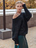 Свитер со спущенным плечом, ткань с люрексной нитью.