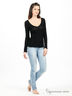 Детали: V-образный вырез с атласным кантом, декоративная застежка на пуговицах, длинные рукава, низ изделия обработан оверлоком