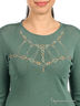 Детали: длинный рукав; круглый вырез; декорирован оригинальной вышивкой со стразами