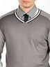 Детали: v-образный вырез горловины дополнен трикотажной лентой в рубчик, оригинальный крой рукава
