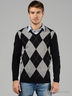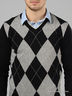 Элегантный джемпер из мягкой шерсти, силуэт свободный, V-образный вырез горловины. Манжеты рукавов, вырез и низ изделия оформлены в рубчик. Джемпер украшен принтом "ромб".
