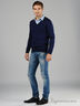 Стильный трикотажный джемпер свободного силуэта с V-образным вырезом горловины. Манжеты рукавов, вырез и низ изделия выполнены из трикотажной резинки.