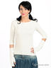 Детали: округлый вырез горловины, укороченный рукав, полочка украшена вышивкой и стразами; к вороту пришиты веревочки, к которым пришиты митенки