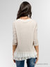 Очаровательный джемпер с рукавами 3/4 и округлым вырезом горловины. Изделие декорировано рюшами по низу. Отличный вариант для создания модного образа.